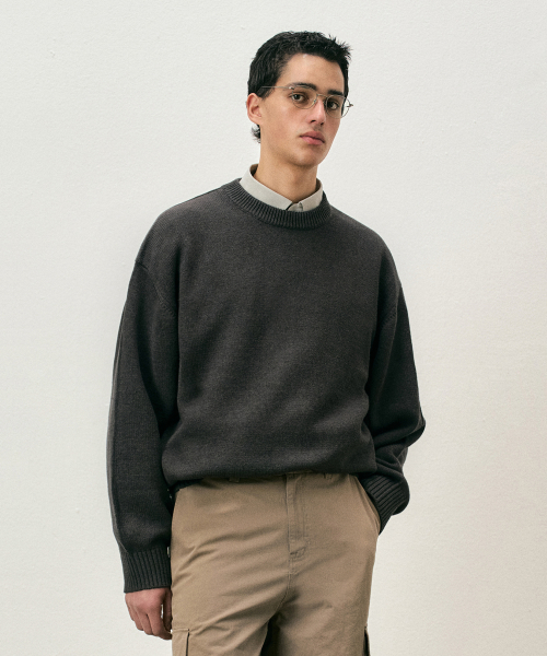 [리뉴얼ver.] 소프트 코튼 크루넥 니트 차콜 COOSKT008CHARCOAL