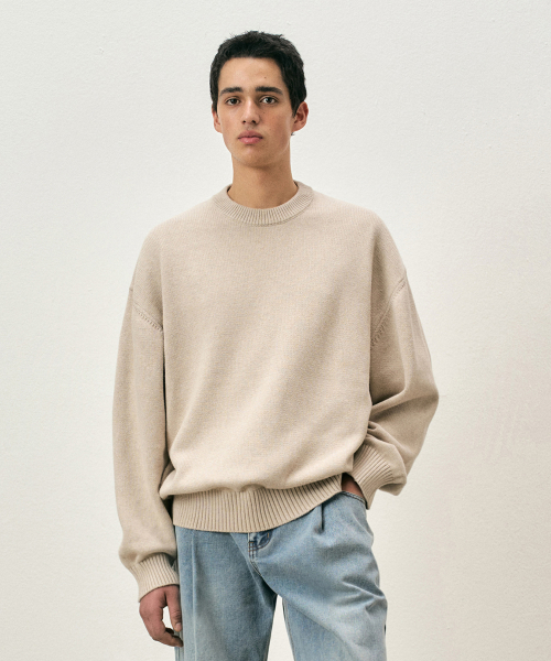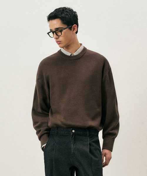 [리뉴얼ver.] 소프트 코튼 크루넥 니트 빈티지브라운 COOSKT008VBROWN