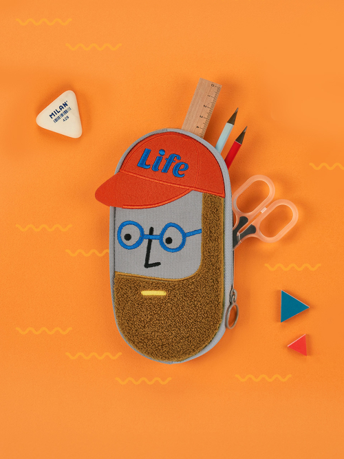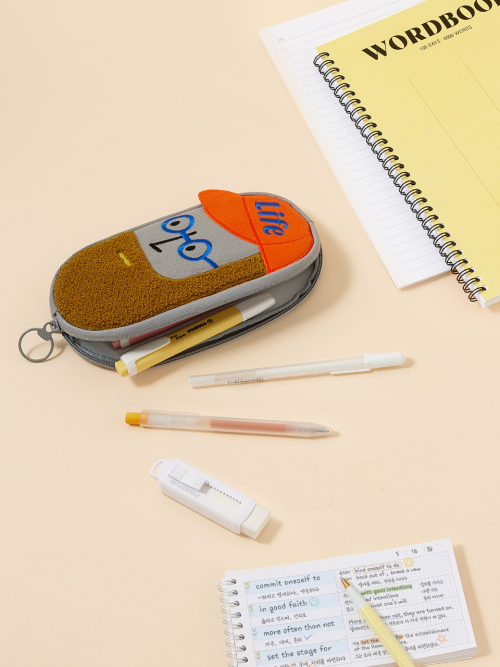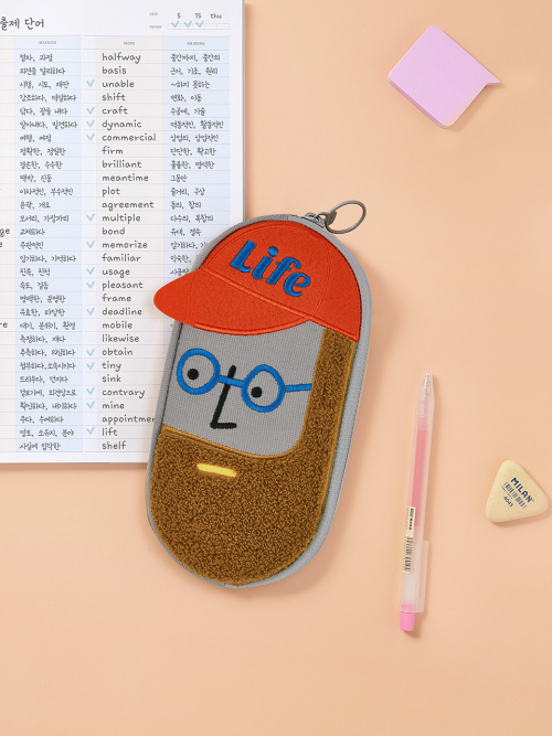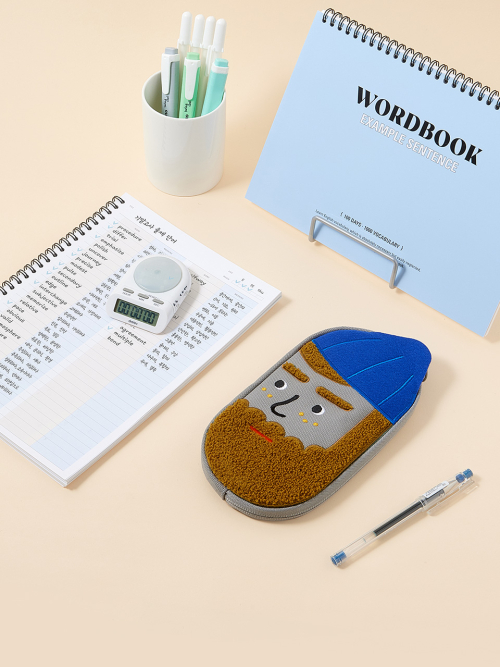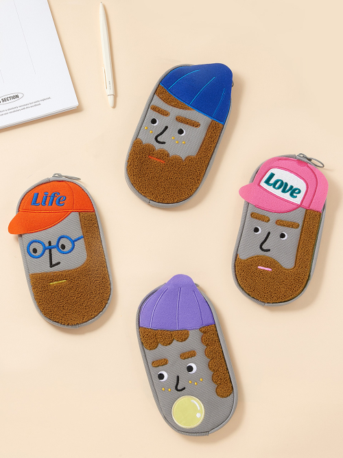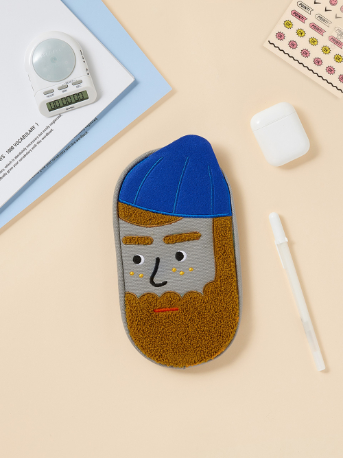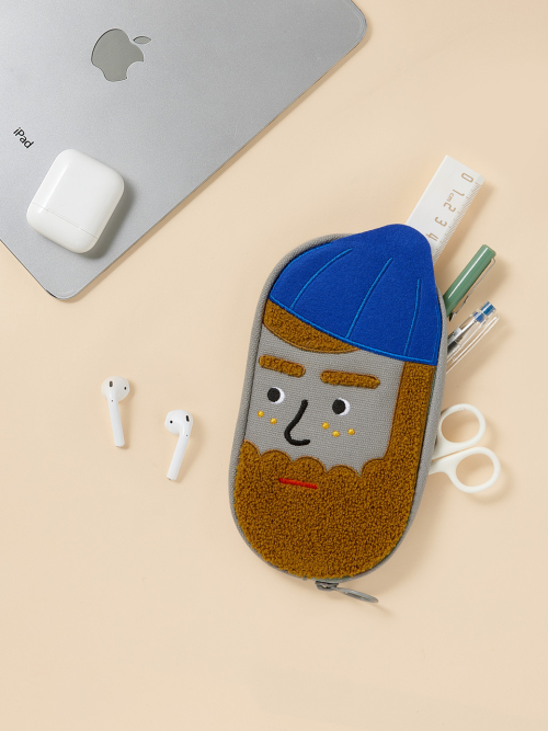 캔버스 필통 부클 자수 펜 파우치_비어드맨 베스트프렌드