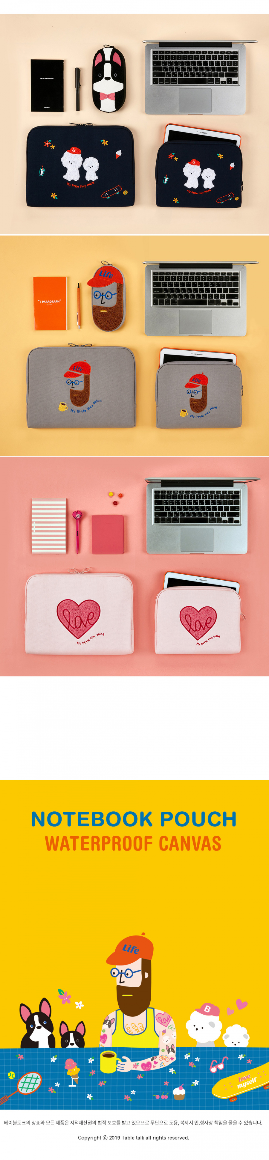 노트북 파우치 방수캔버스_부클 비숑 (아이패드. 13. 15)