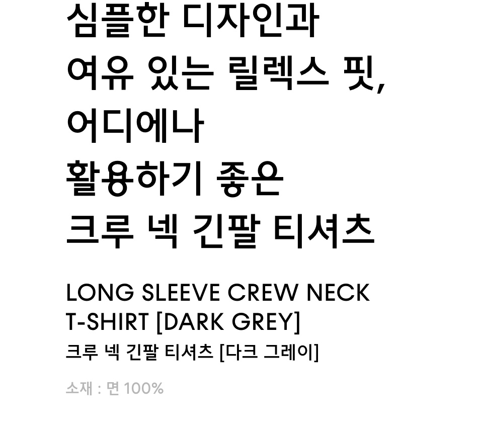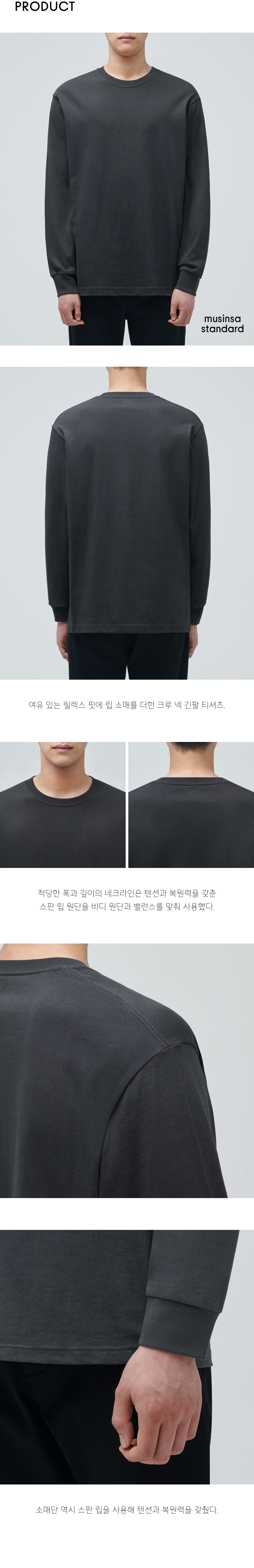 크루 넥 긴소매 티셔츠 [차콜 그레이]