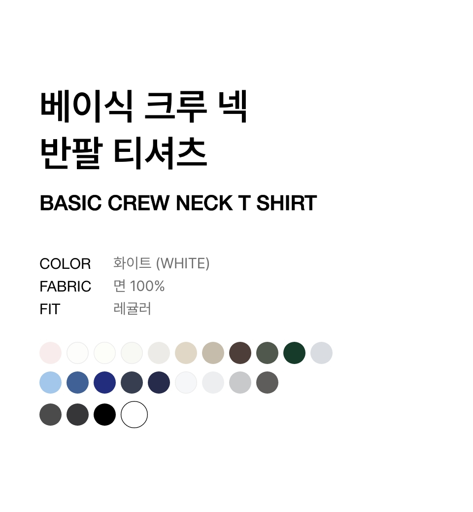 [쿨탠다드] 베이식 크루 넥 티셔츠 [화이트]