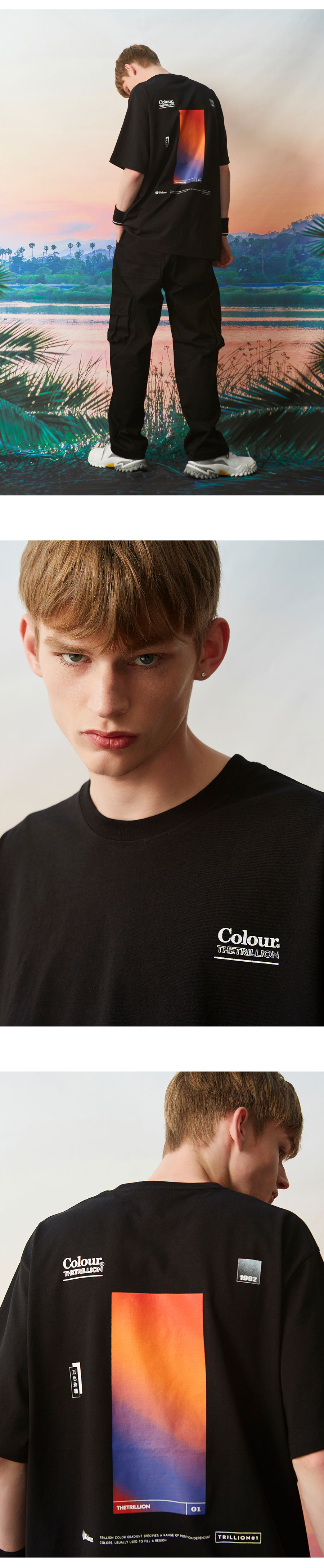 컬러 그라데이션 오버핏 반팔티셔츠 BLACK