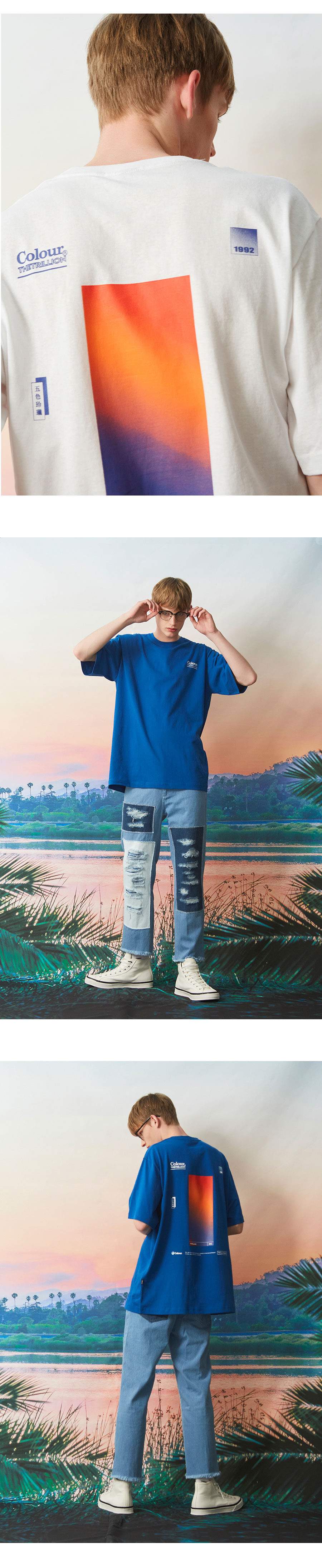 컬러 그라데이션 오버핏 반팔티셔츠 WHITE