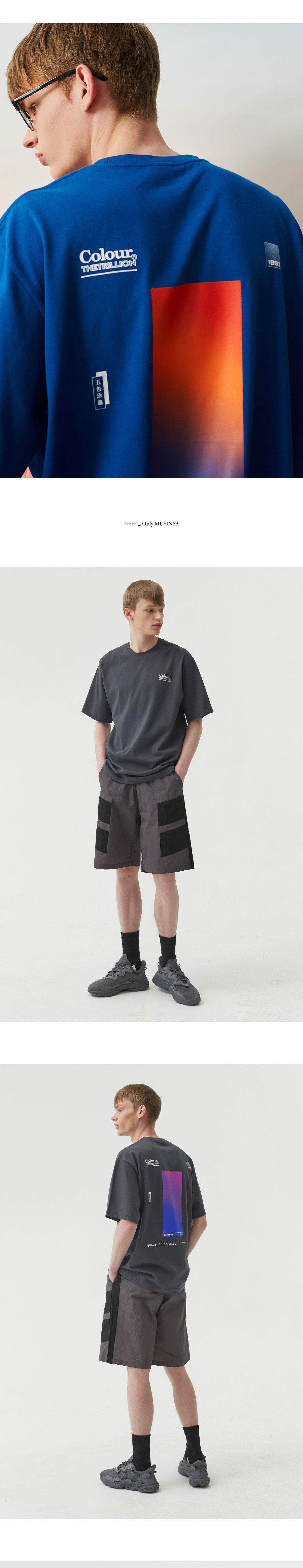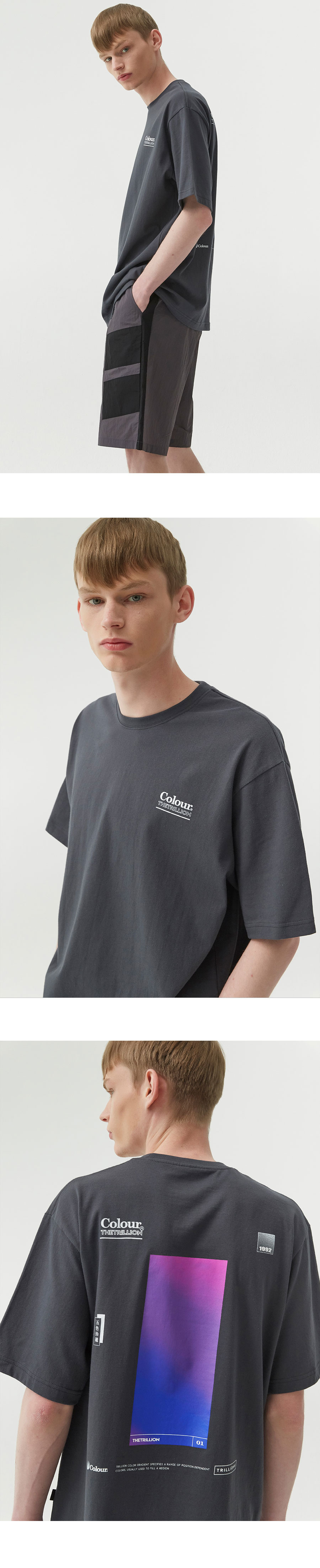 컬러 그라데이션 오버핏 반팔티셔츠 (차콜)